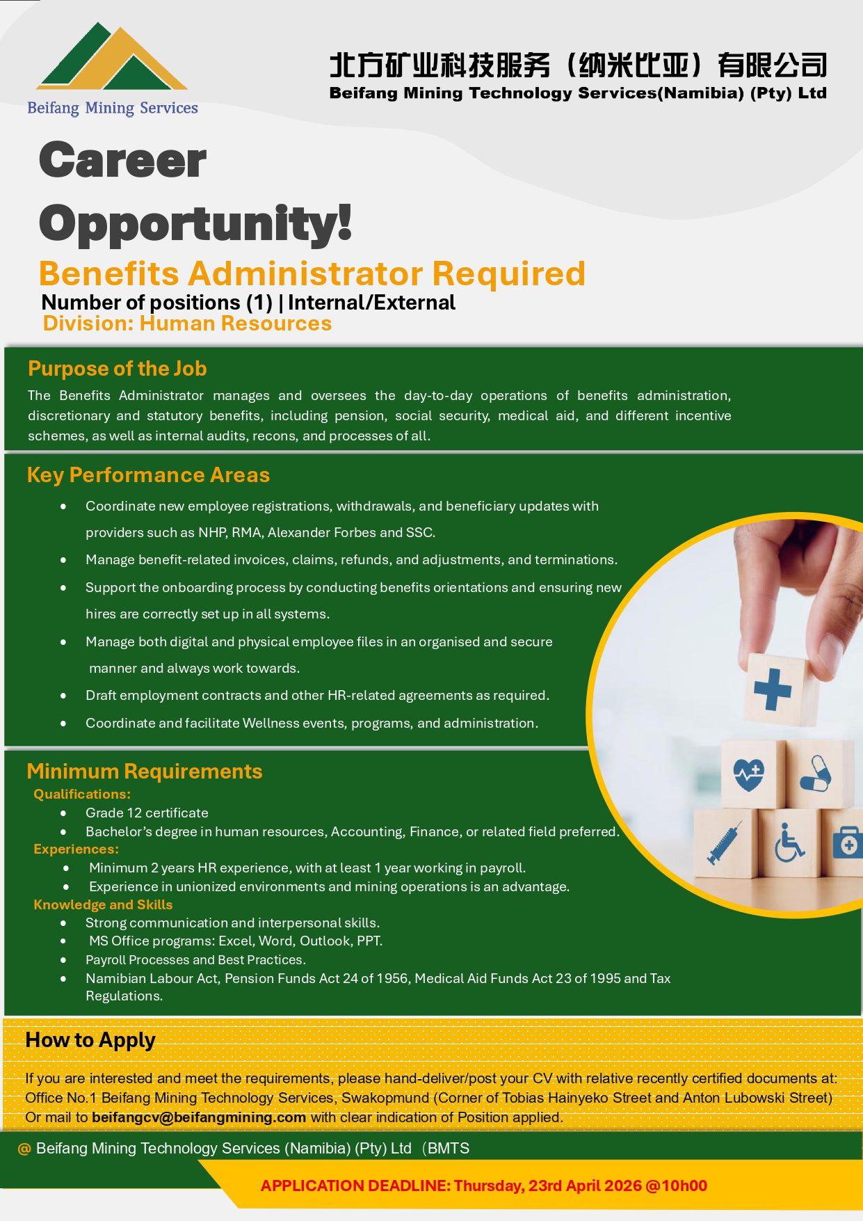Discover the latest Beifang Mining Service Vacancies for 2026! Apply for Auto Electricians, Finance Assistants and various other positions through the @www.beifangmining.com.na Job Portal. Start your application today and take the next step in your career!