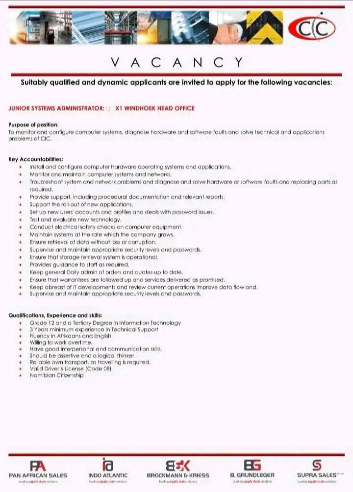 Discover the latest CIC Vacancies for 2026! Apply for Administrator, Accountant, Sales Representative and various other positions through the @www.cic.com.na Job Portal. Start your application today and take the next step in your career!