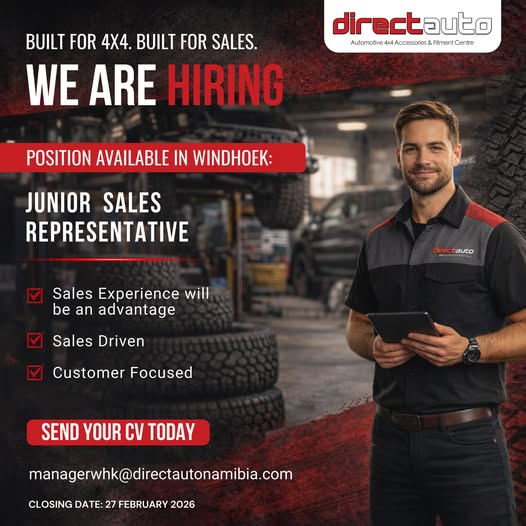Namibian candidates seeking Direct Auto Namibia job opportunities have come to the right place! This article offers detailed information on Junior Sales Representative and various other job openings to help advance your career. For those interested in employment with the Namibian government and private companies, we provide up-to-date information on current Direct Auto Namibia job openings. The Direct Auto Namibia Vacancies Portal is known for frequently hiring for various government positions in Namibia, making it one of the most sought-after platforms. Additionally, you can download the Direct Auto Namibia Application Form 2026 PDF for Namibian government jobs directly from our website. Start your career journey today!