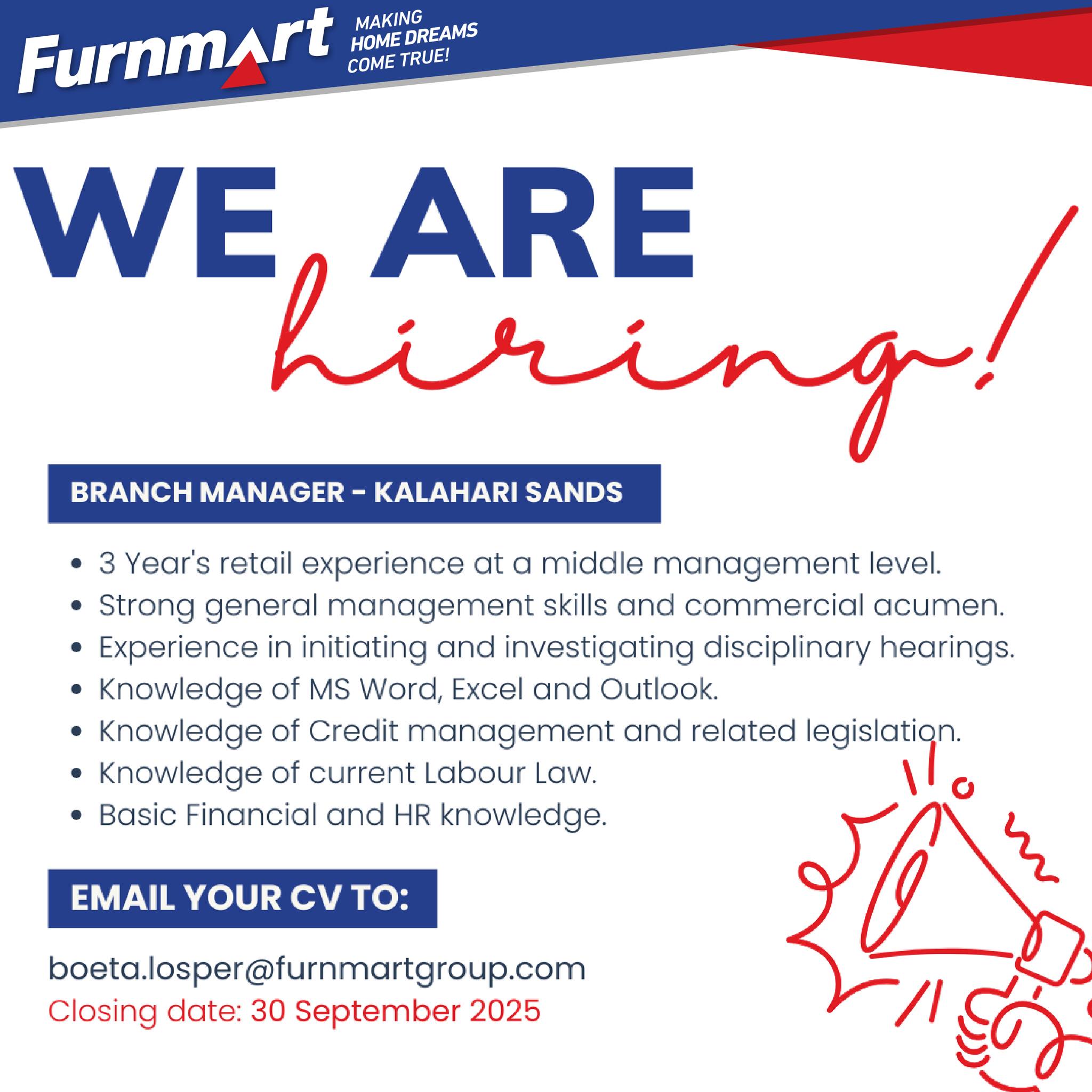 Discover the latest Furnmart Vacancies for 2025! Apply for Branch Manager, Driver and various other positions through the @www.furnmart.com.na Job Portal. Start your application today and take the next step in your career!