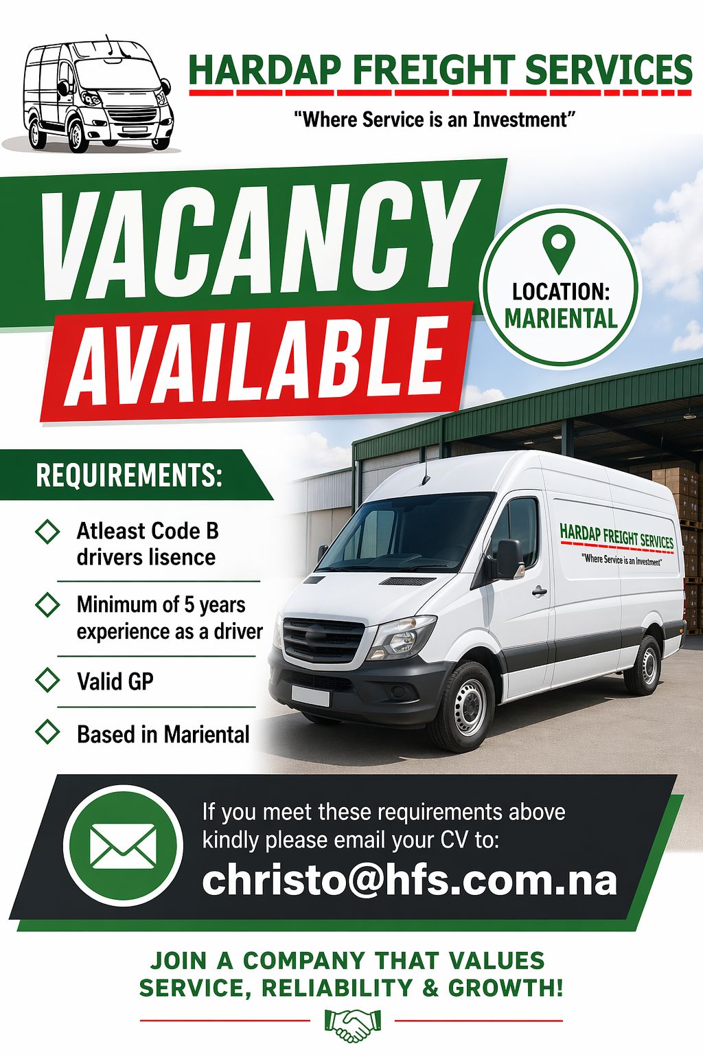 | 📢 Hiring Organization: | Hardap Freight Services Vacancies Namibia |