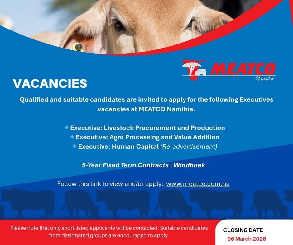 Namibian candidates seeking Meatco job opportunities have come to the right place! This article offers detailed information on Executive, Accountant and various other job openings to help advance your career. For those interested in employment with the Namibian government and private companies, we provide up-to-date information on current Meatco job openings. The Meatco Careers Portal is known for frequently hiring for various government positions in Namibia, making it one of the most sought-after platforms. Additionally, you can download the Meatco Application Form 2026 PDF for Namibian government jobs directly from our website. Start your career journey today!