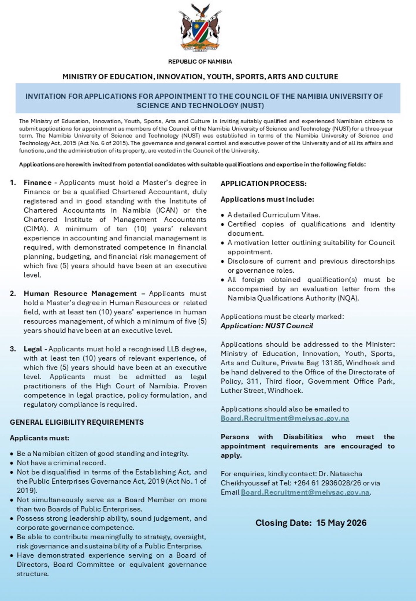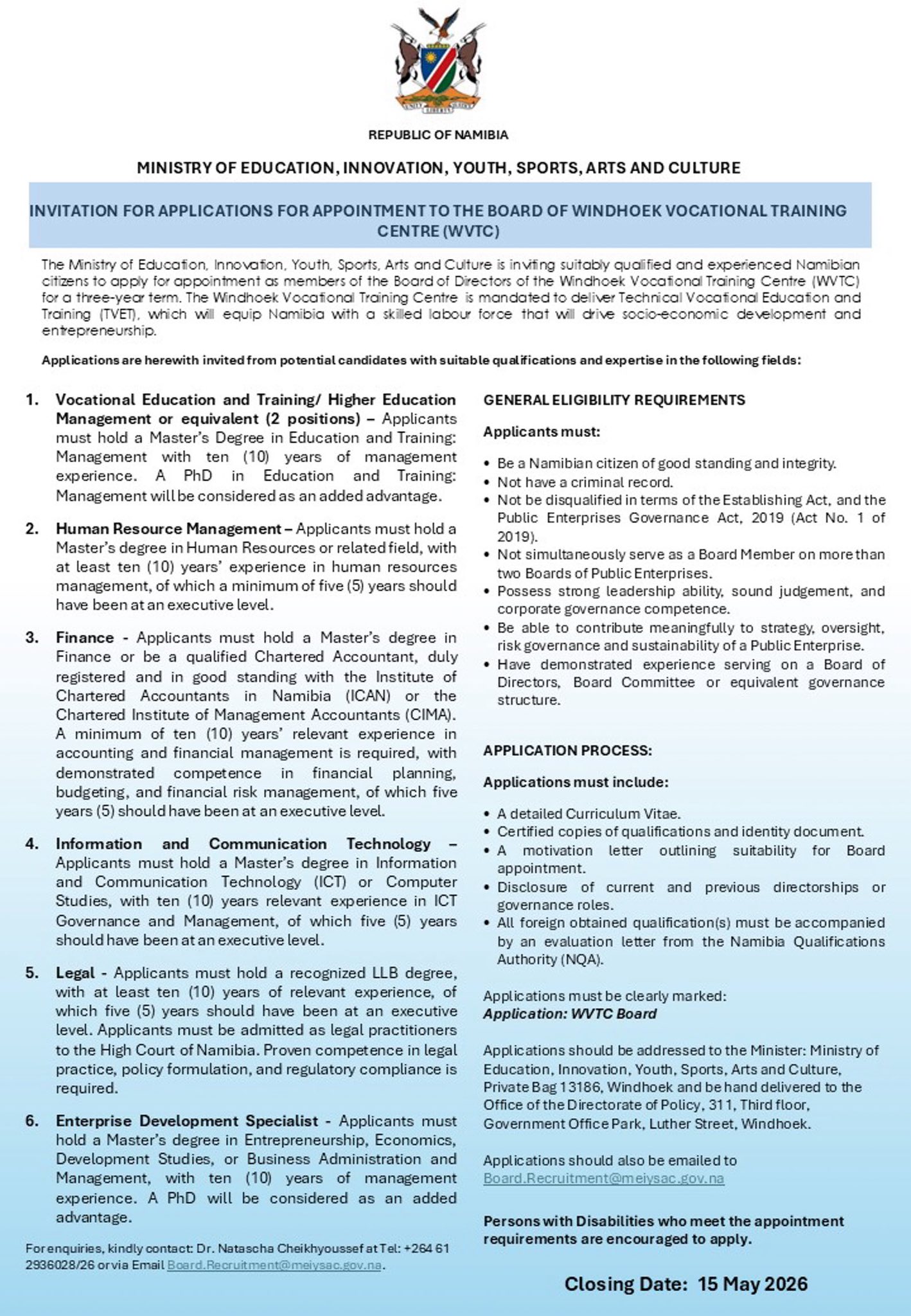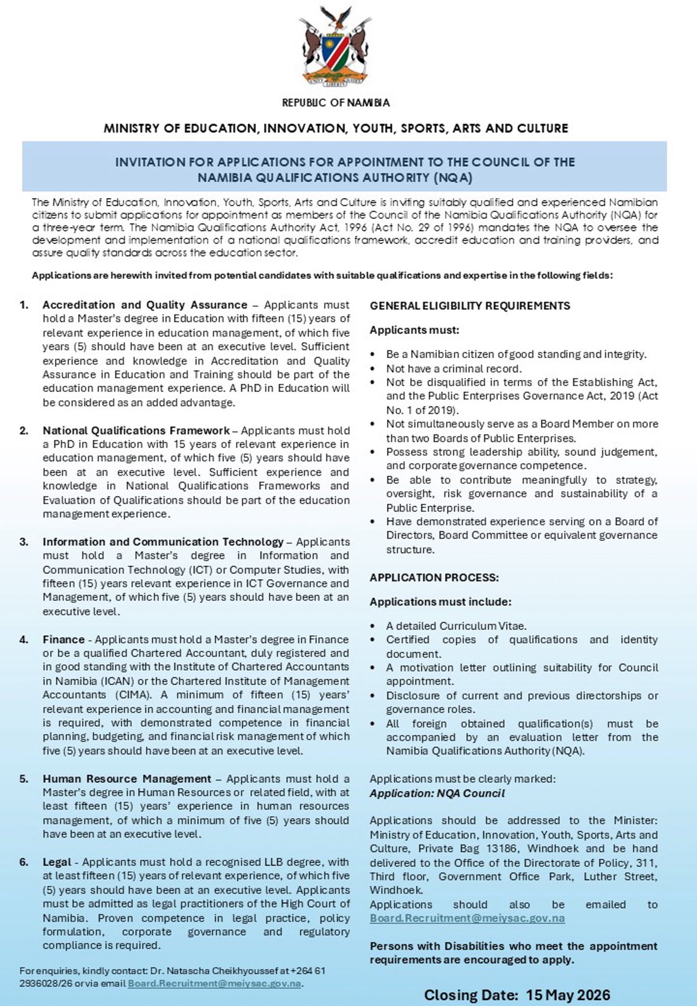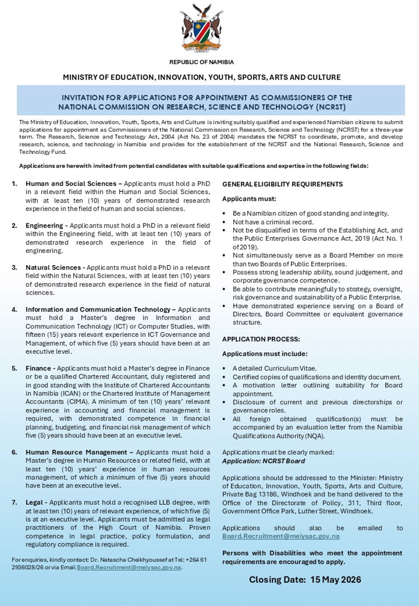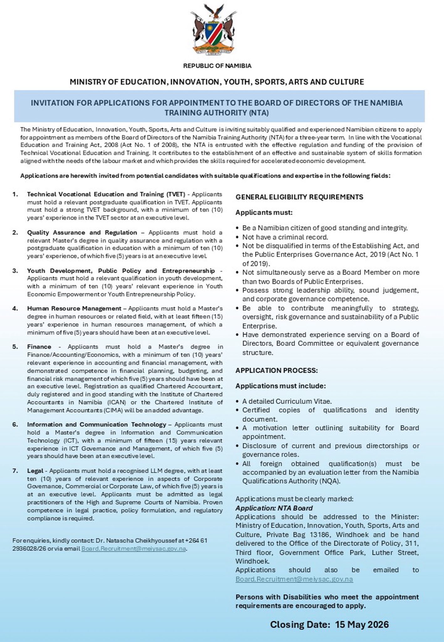 - 📧 Email Address:- info@meiysac.gov.na