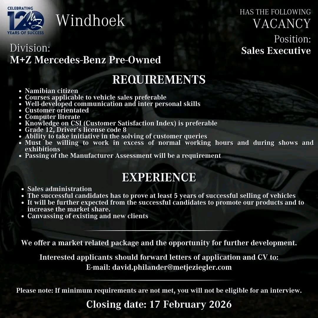 Discover the latest Mercedes-Benz Namibia Vacancies for 2025! Apply for Sales Executive and various other positions through the @www.mercedes-benz-nam.com Job Portal. Start your application today and take the next step in your career!