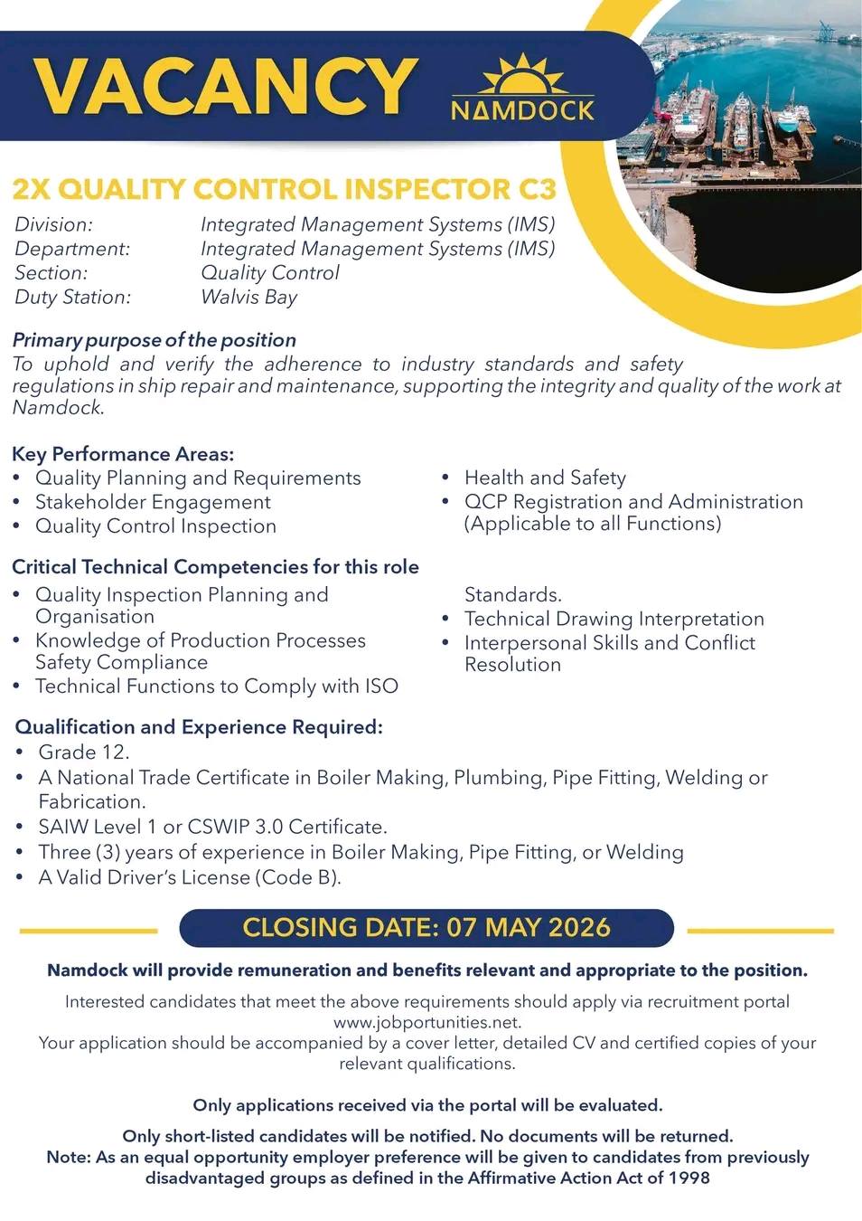 | 📢 Hiring Organization: | Namdock Vacancies Namibia |