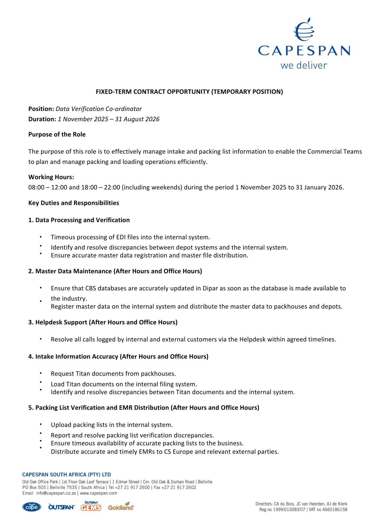 Namibian candidates seeking Namibia Grape Company job opportunities have come to the right place! This article offers detailed information on Data Verification Co-ordinator and various other job openings to help advance your career. For those interested in employment with the Namibian government and private companies, we provide up-to-date information on current Namibia Grape Company job openings. The Namibia Grape Company Vacancies Portal is known for frequently hiring for various government positions in Namibia, making it one of the most sought-after platforms. Additionally, you can download the Namibia Grape Company Application Form 2025 PDF for Namibian government jobs directly from our website. Start your career journey today!