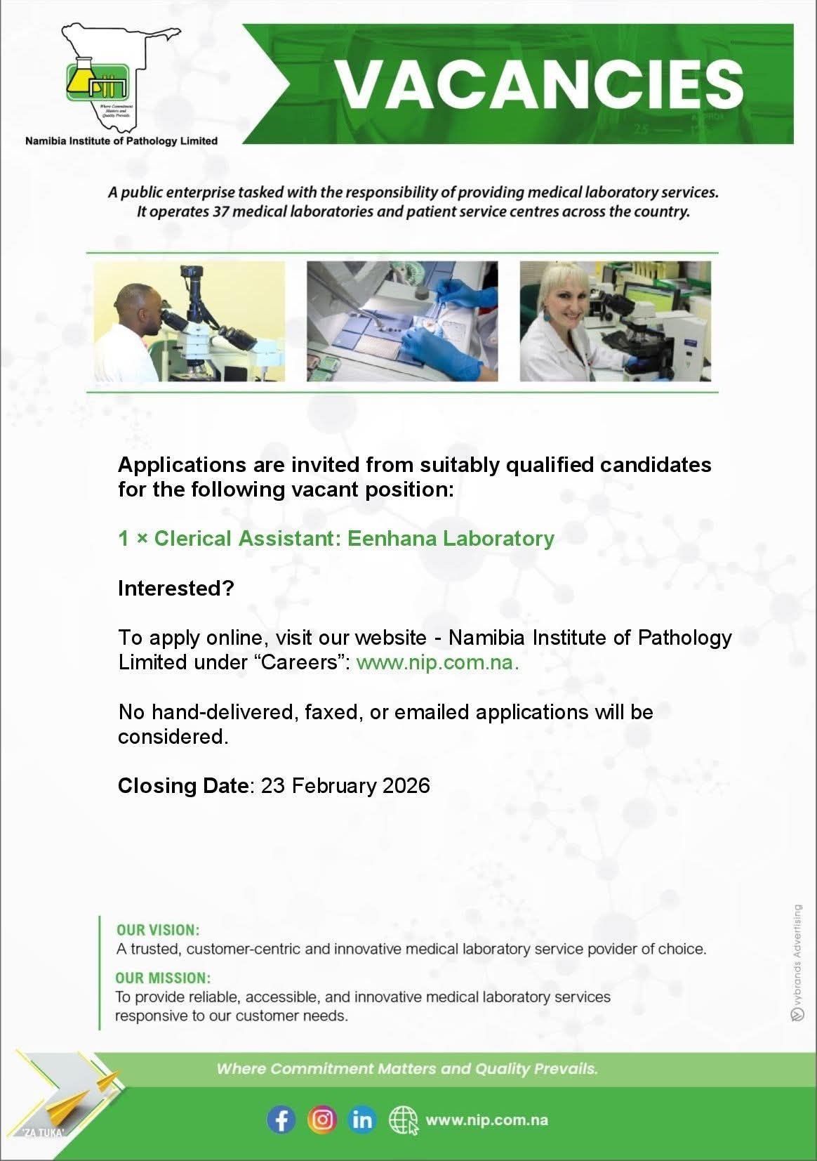| 📢 Hiring Laboratory: | Namibia Institute of Pathology Limited Vacancies 2026 |