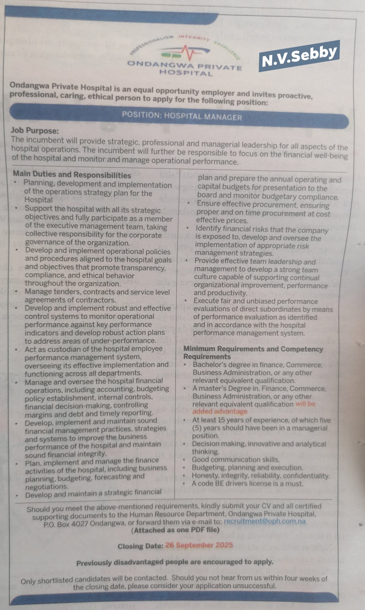 📢 Hiring Hospital: | Ondangwa Private Hospital Vacancies 2025 |