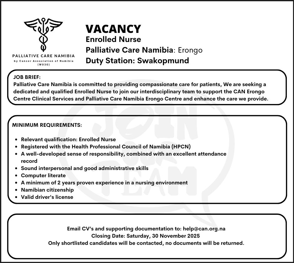 | π’ Hiring Department/Company: | Palliative Care Namibia Vacancies 2025 |
