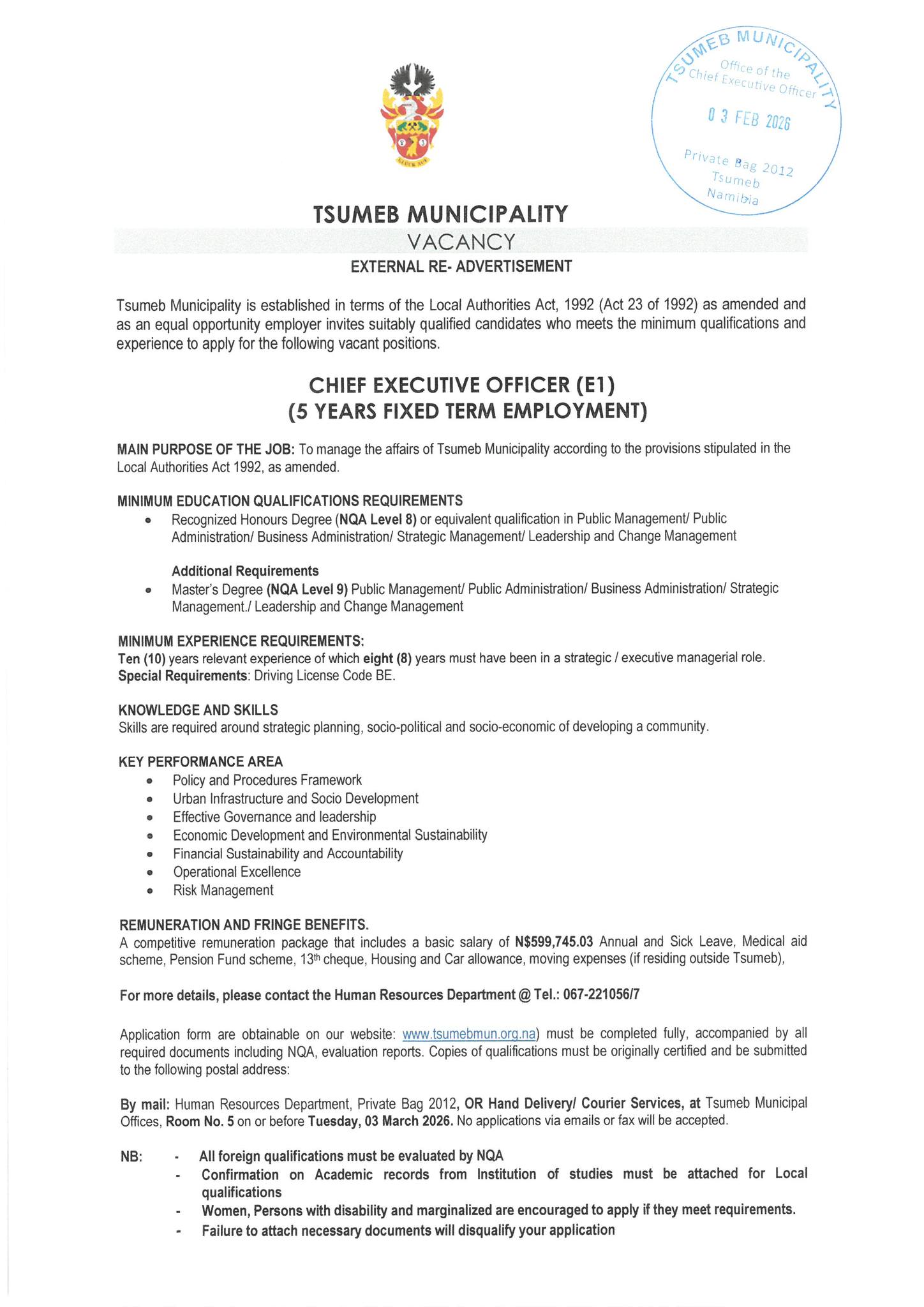 | 📢 Hiring Municipality: | Tsumeb Municipality Vacancies 2026 |
