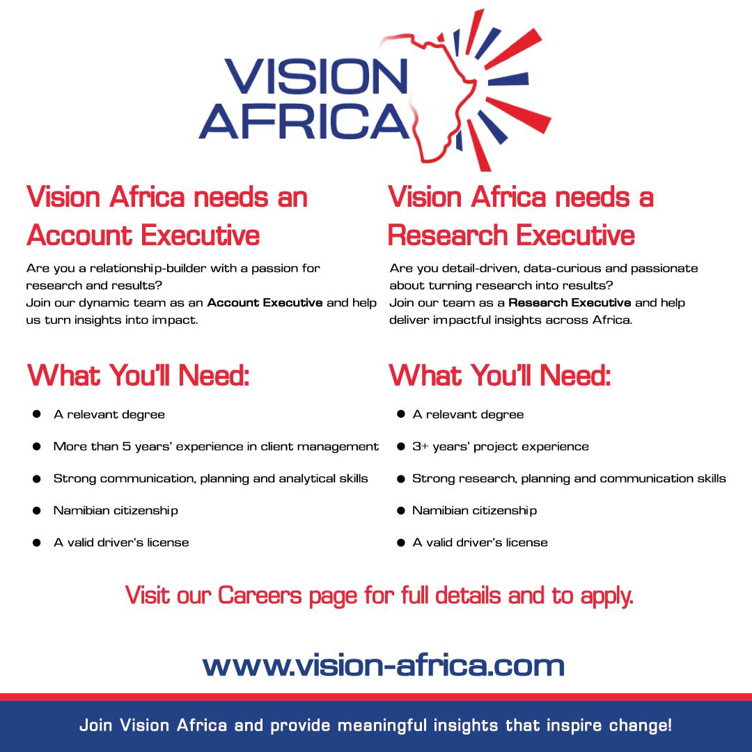 Apply for Account Executive, Bookkeeper and various job openings in Namibia. Submit your online application for Vision Africa job opportunities through the recruitment portal at @vision-africa.com. Our website provides a detailed step-by-step guide on how to apply for Vision Africa job openings in Namibia. Stay informed with daily updates on the latest vacancy news and notices in Namibia.