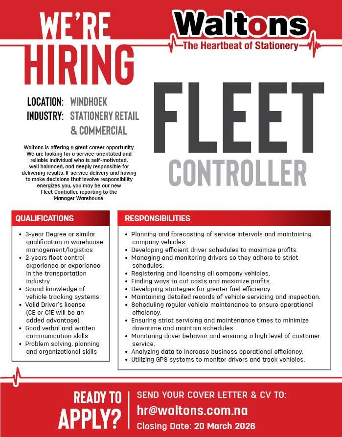 Discover the latest Waltons Namibia Vacancies for 2026! Apply for Fleet Controller and various other positions through the @www.waltons.com.na Job Portal. Start your application today and take the next step in your career!